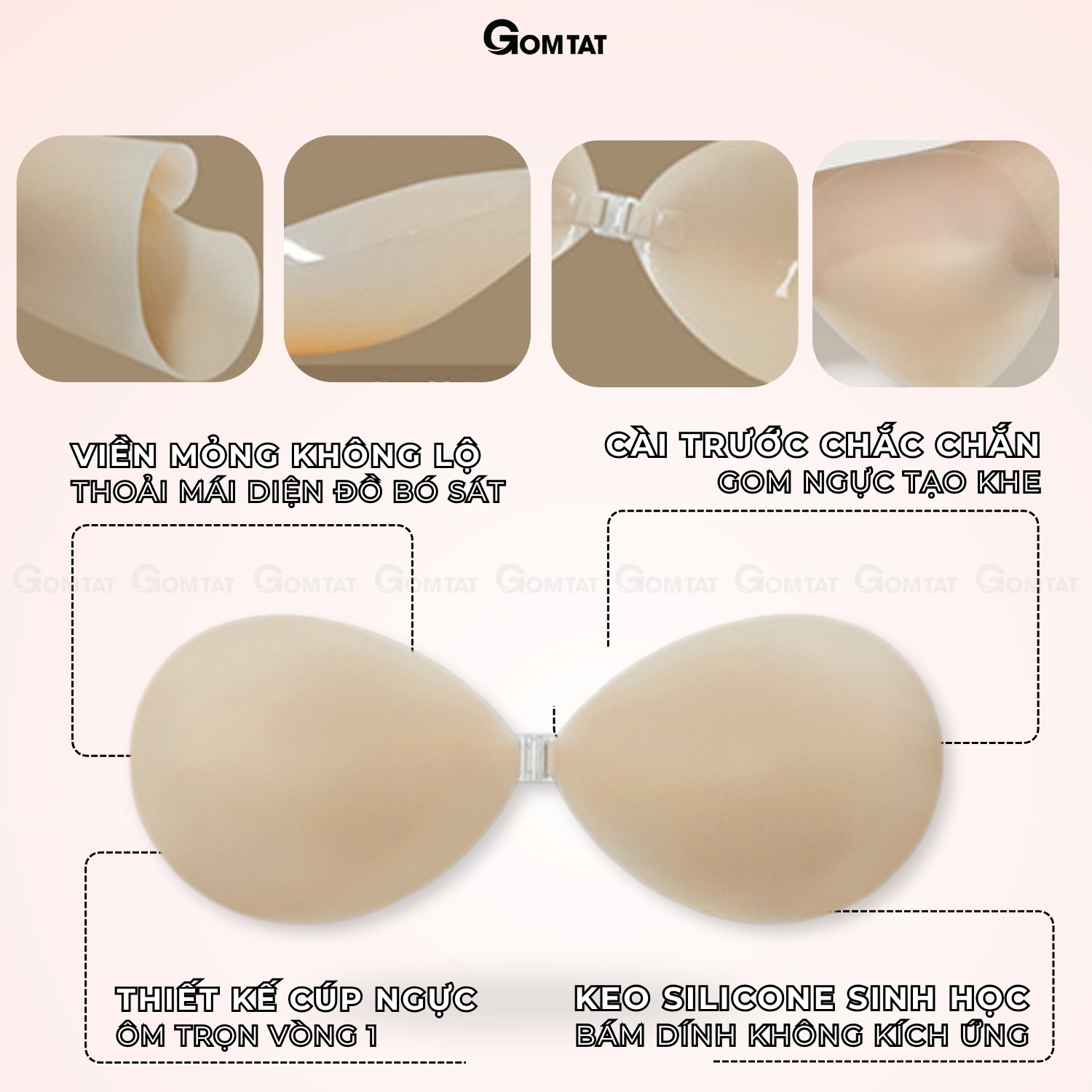 Áo dán ngực cài trước gom ngực tạo khe GOMTAT, miếng dán nâng ngực silicon viền siêu mỏng, chống thấm - SA-4951: là dòng sản phẩm áo dán nâng ngực cao cấp mới nhất, thiếc kế mắc cài trước chắc chắn, không lộ viền khi mang. THÔNG TIN SẢN PHẨM MIẾNG DÁN NGỰC SILICONE - Xuất Xứ : Trung Quốc - Chất Liệu : Silicon - Màu Sắc : Da, Trong suốt - Phân loại: Thông hơi và không thông hơi - Size: A, B - Quy cách đóng gói: túi zip kéo cao cấp ĐẶC ĐIỂM SẢN PHẨM ÁO NGỰC DÁN SILICONE - Miếng Dán Nâng Ngực Thiết kế trực tiếp vào bầu ngực ôm trọn V1, không lo bị hở áo hay mất tự nhiên khi mặc áo Body. - Miếng Dán Nâng Ngực Thiết kế nút cài trước: có tác dụng khi kéo vào sẽ đẩy 2 bên bầu ngực hỗ trợ tạo khe ngực và nâng đỡ V1 đầy đặn hơn. - Miếng Dán Nâng Ngực Chất liệu Silicone cao cấp, đẹp, thời trang, không tạo cảm giác khó chịu và nặng nề khi sử dụng. - Miếng dán chống thấm nước, chất liệu an toàn cho vùng da nhạy cảm. HƯỚNG DẪN CÁCH VỆ SINH THÔNG TIN SẢN PHẨM MIẾNG DÁN NGỰC SILICONE - Giữ lại miếng nilon bảo vệ lớp dính để tái sử dụng áo nhiều lần. - Vệ sinh áo: Rửa sạch dưới vòi nước với xà phòng pha loãng hoặc nước giặt. Để bề mặt dính được khô tự nhiên, tuyệt đối không lau bằng khăn lông hoặc dùng các vật sắc nhọn cọ rửa. Sau khi khô, dán miếng nilon bảo vệ lại như ban đầu. VÌ SAO BẠN NÊN CHỌN GOMTAT - Hàng đảm bảo chất lượng giống mô tả, hoàn tiền nếu sản phẩm không đúng mô tả - Sản phẩm được kiểm tra kỹ càng, cẩn thận - Hỗ trợ tư vấn nhiệt tình - Hàng có sẵn giao hàng ngay khi nhận đơn *Quý khách lưu ý: - Shop không nhận đổi size và màu sắc qua phần ghi chú, mong quý khách có thể nhắn tin trực tiếp với shop. - Shop ưu tiên giao theo đơn khách đặt, không nhận giao hàng theo ghi chú và tin nhắn. - Màu sắc của sản phẩm thực tế có thể đậm, nhạt hơn ảnh mô tả do ánh sáng và màn hình thiết bị khác nhau. - Kích thước sản phẩm dung sai cho phép ±1cm.