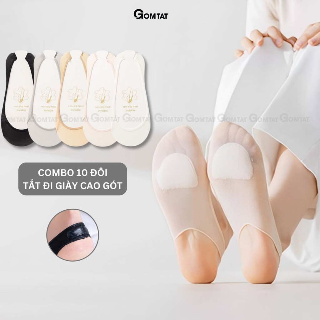 Combo 10 đôi tất nữ lười đi giày cao gót GOMTAT, có đệm silicon chống tuột gót - CAOGOT-SUX-19218-CB10: loại tất vớ nữ được thiết kế chuyên dùng để đi giày cao gót, có miếng đệm mềm mại giảm mạnh tình trạng đau chân khi sử dụng giày cao gót trong thời gian dài