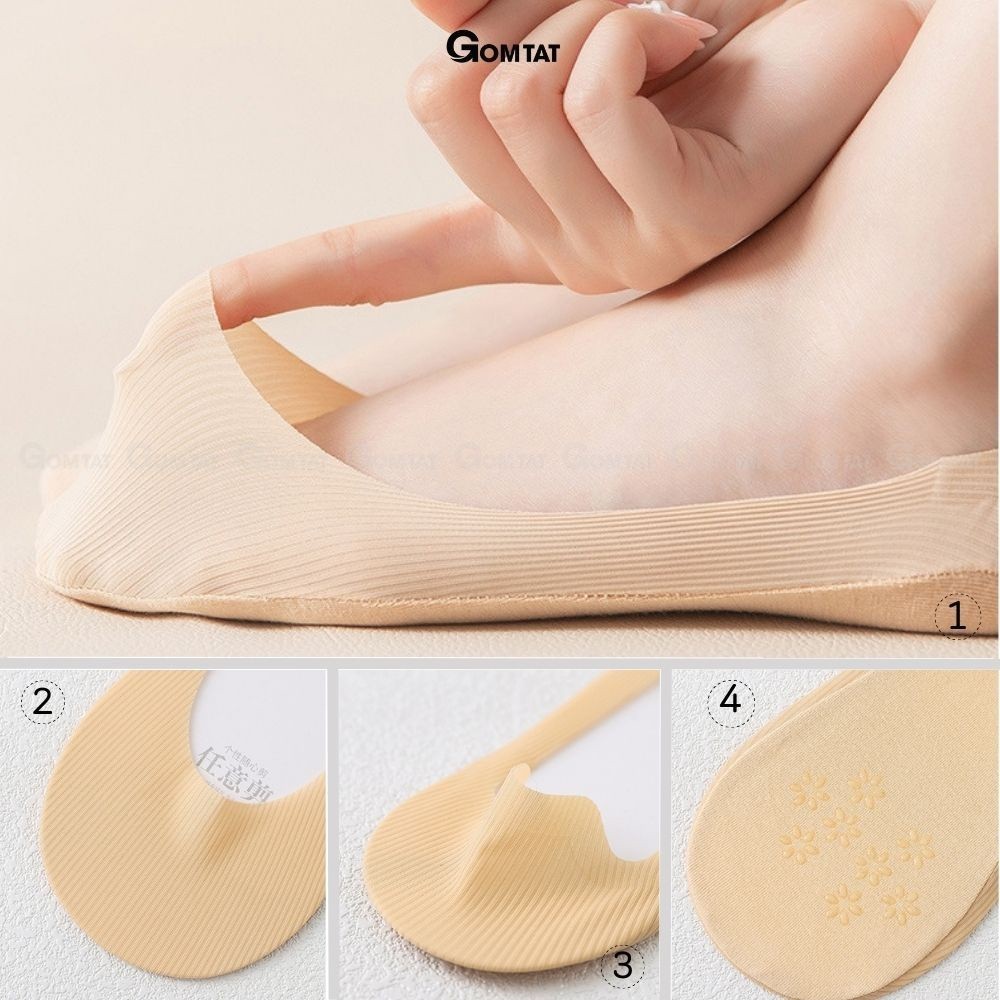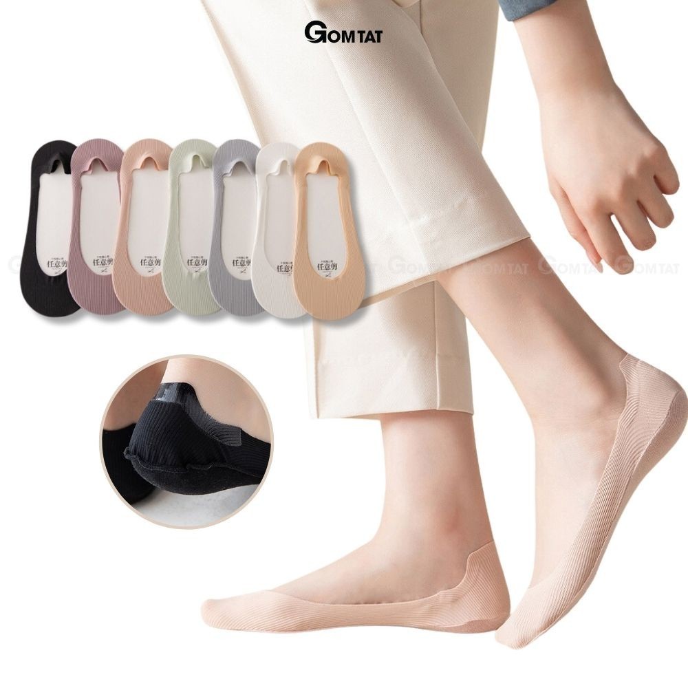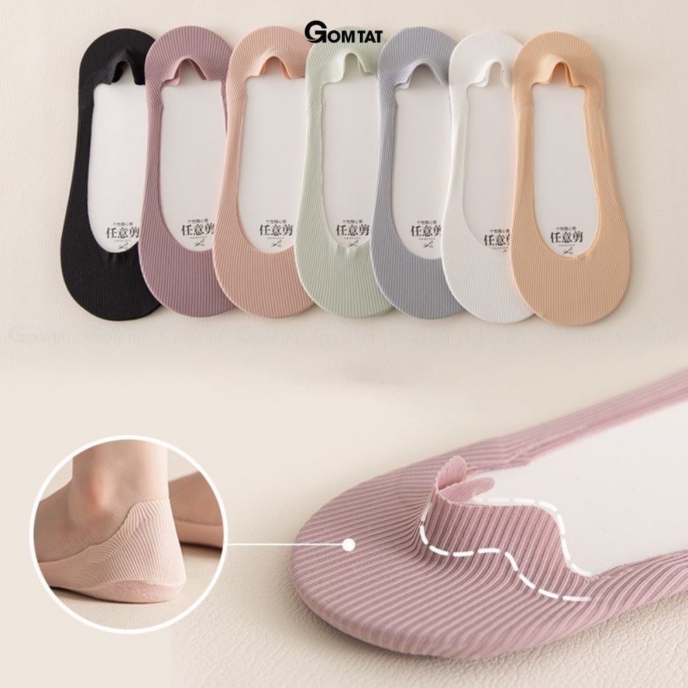 Combo 10 đôi tất nữ lười GOMTAT, có đệm silicon chống tuột gót, chất liệu cotton mềm mại - BUB-KOL-1302-CB10: là loại vớ lười siêu ngắn thích hợp cho các bạn thích thể loại mang giấu vớ như khi mang giày lười, giày búp bê, giày cao gót, chất liệu cotton co giãn cực tốt, ưu điểm là có đệm cao su chống trượt gót chân khi mang.