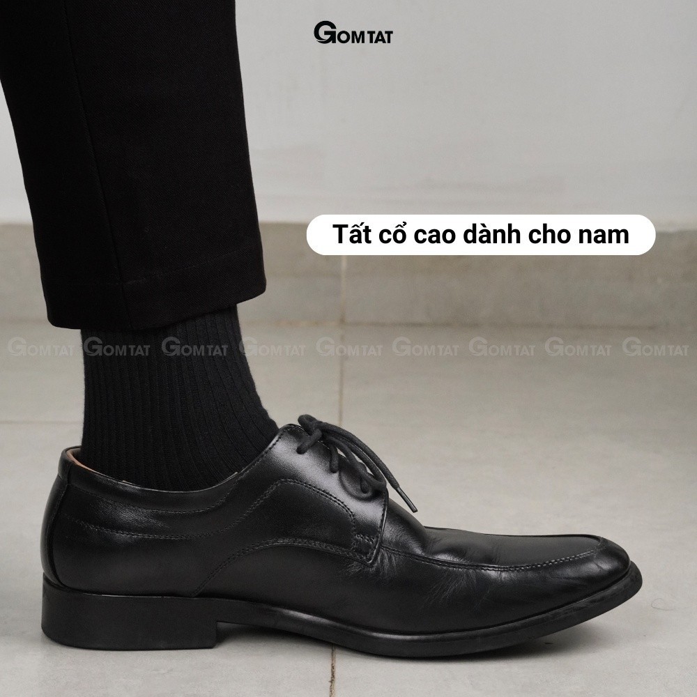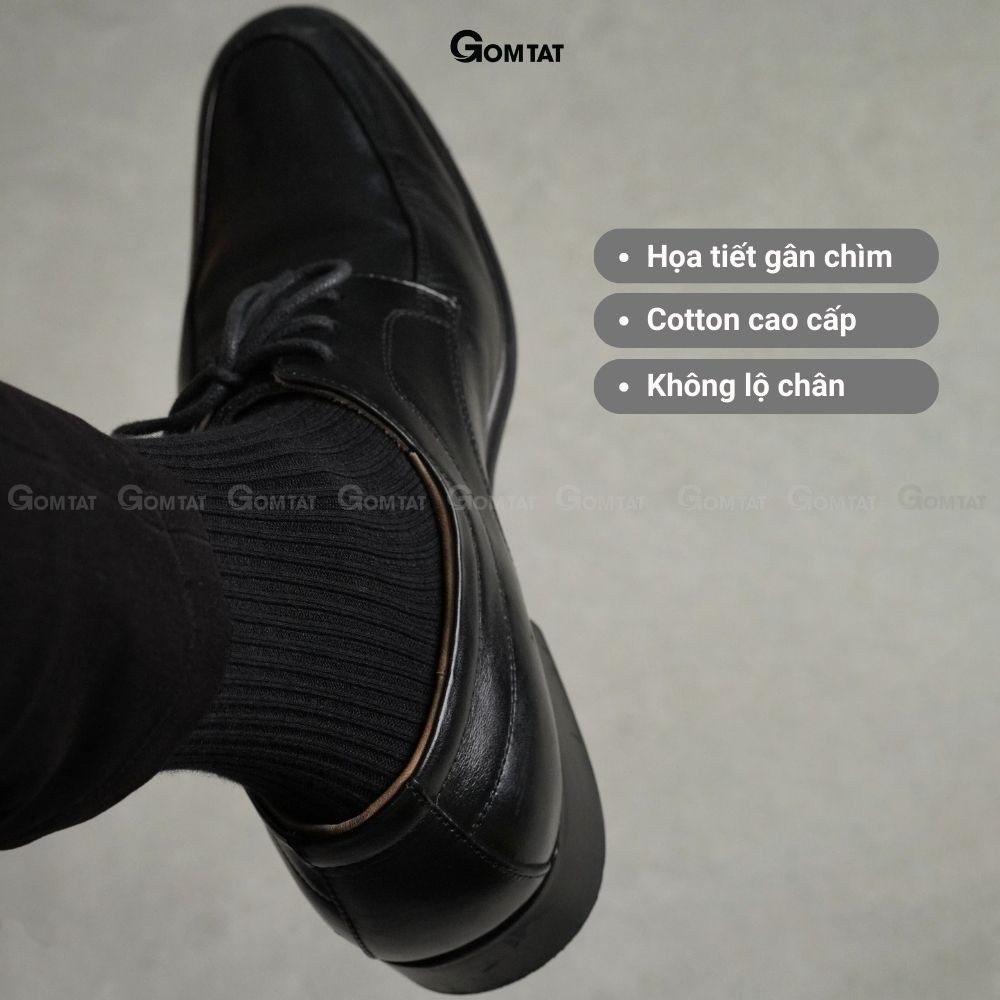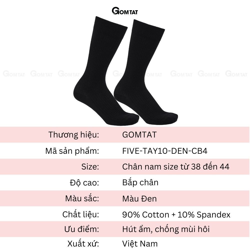 Combo 4 đôi tất vớ nam cổ cao công sở đi giày tây GOMTAT, chất liệu cao cấp họa tiết gân chìm màu đen-FIVE-TAY10-DEN-CB4: Là loại vớ cổ Cao với tone màu đen cá tính, phù hợp cho KH cá tính mạnh phối với giày thể thao, hoặc giày tây công sở, chất liệu cotton khử mùi thoáng khí, êm ái khi sử dụng.