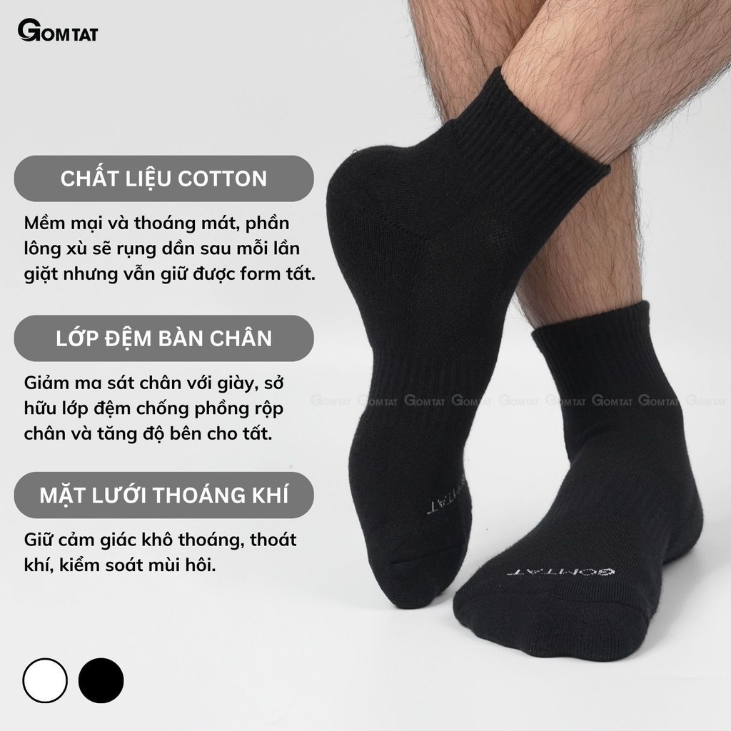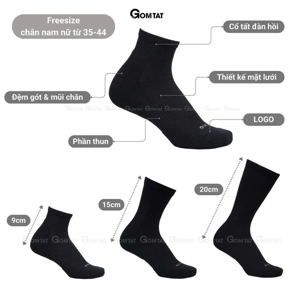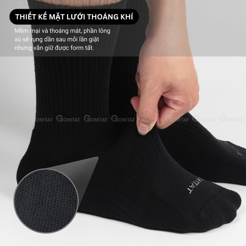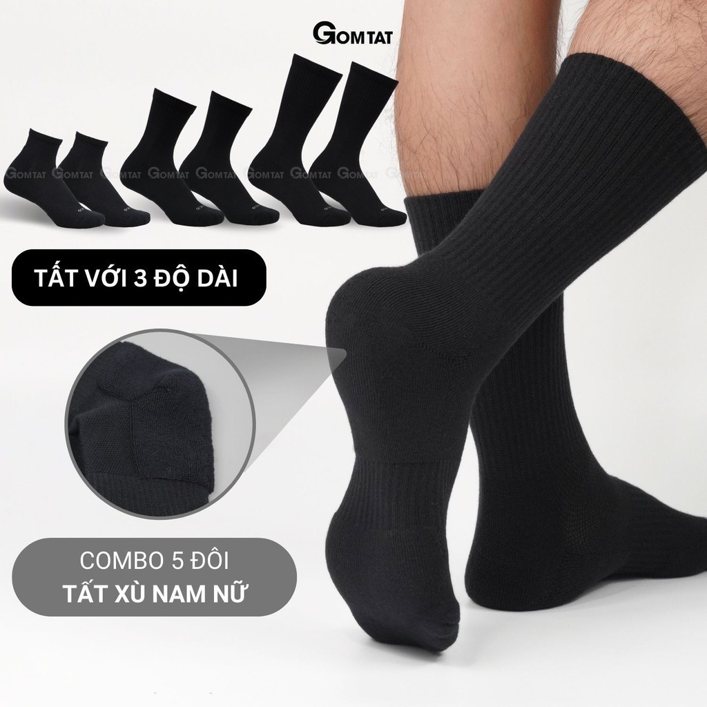 Combo 5 đôi tất đen nam nữ GOMTAT có đệm xù êm chân, sợi cotton dày dặn, khử mùi kháng khuẩn - STA-5009-CB5: Là loại tất với tone màu đơn giản và trẻ trung, rất dễ để phối với giày sneaker, giày thể thao, hoặc giày tây công sở. Tất được làm từ chất liệu cotton có lớp lót xù mềm mại, khả năng hút ẩm và khử mùi tốt, thiết kế mặt lưới thoáng khí mang lại cảm giác thoải mái và dễ chịu cho đôi chân khi sử dụng.