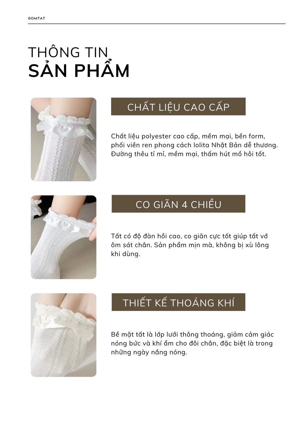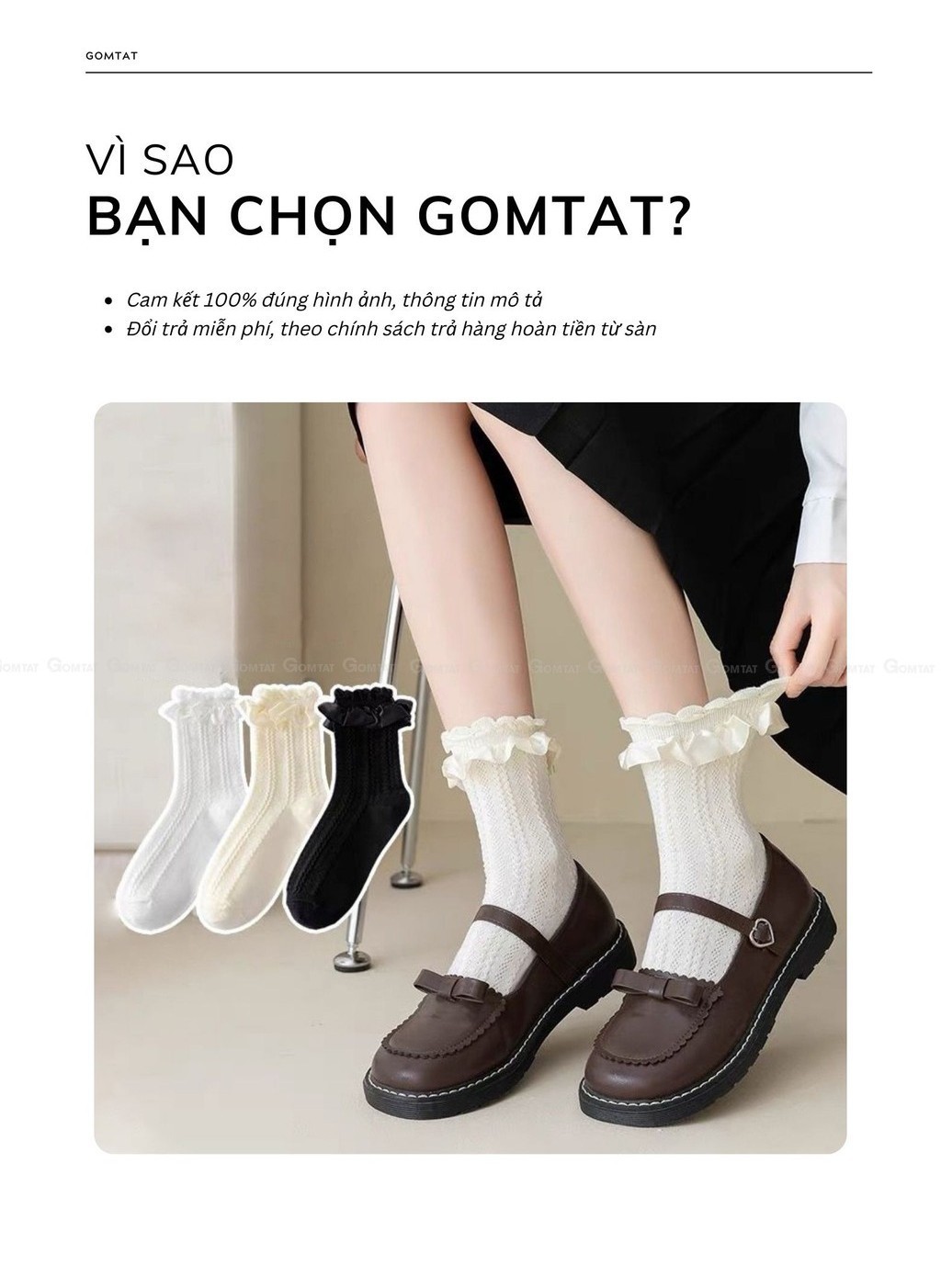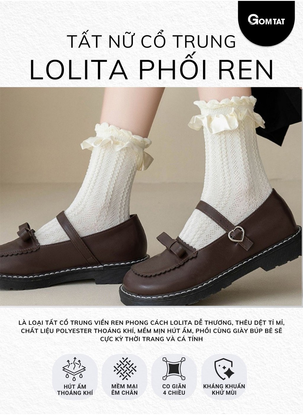 Combo 5 đôi tất lolita nữ cổ trung GOMTAT, chất liệu polyester mềm mịn, thiết kế viền ren dễ thương - HOT-1802-CB5: Là loại Tất cổ trung viền ren phong cách lolita, thêu dệt tỉ mỉ, chất liệu polyester mềm mịn hút ẩm, phồi cùng giày búp bê sẽ cực kỳ thời trang và cá tính.