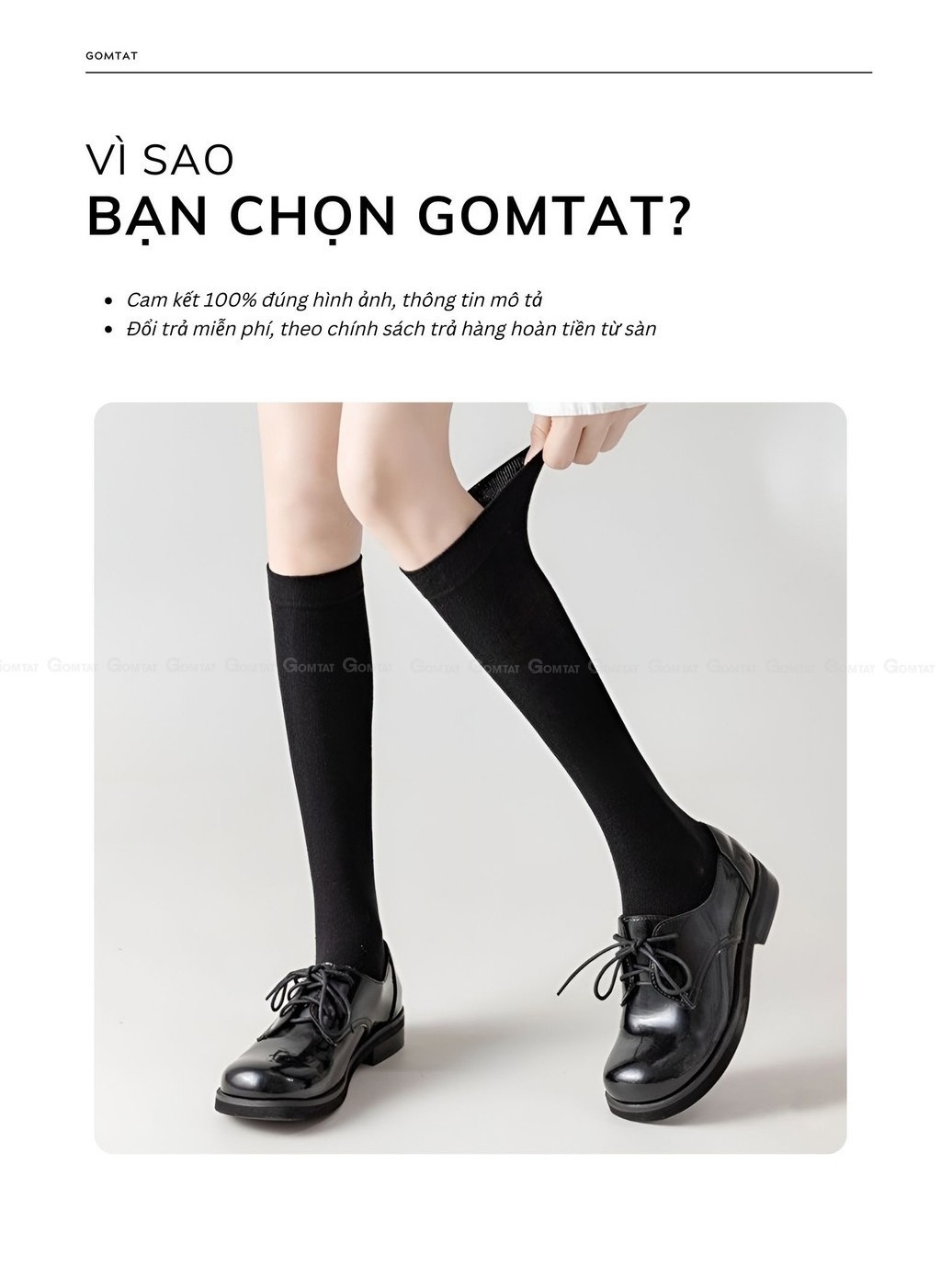Combo 5 đôi tất lolita nữ GOMTAT cổ cao, dưới gối và qua gối trơn trắng đen, chất liệu thun lạnh mềm mịn - HOT-1805-CB5: là loại vớ ống chân mỏng mịn, với đủ 3 chiều dài linh hoạt cho chị em phối cùng nhiều loại giày khác nhau mà vẫn phù hợp thời trang, chất liệu nylon mềm mịn cao cấp, cá tính, đảm bảo chị em thích mê!