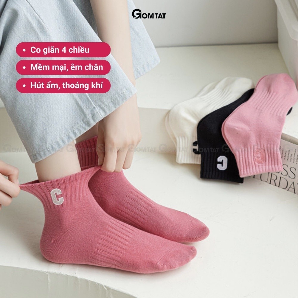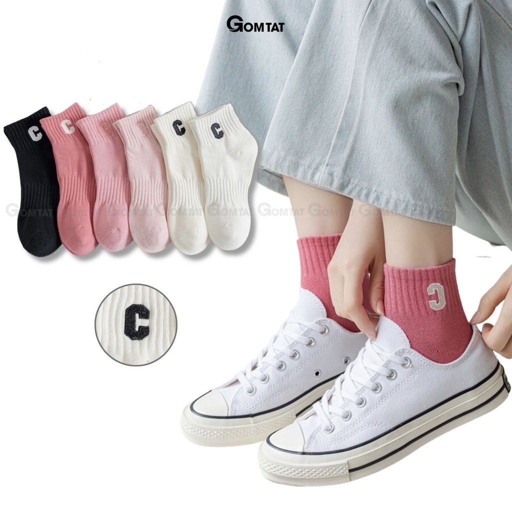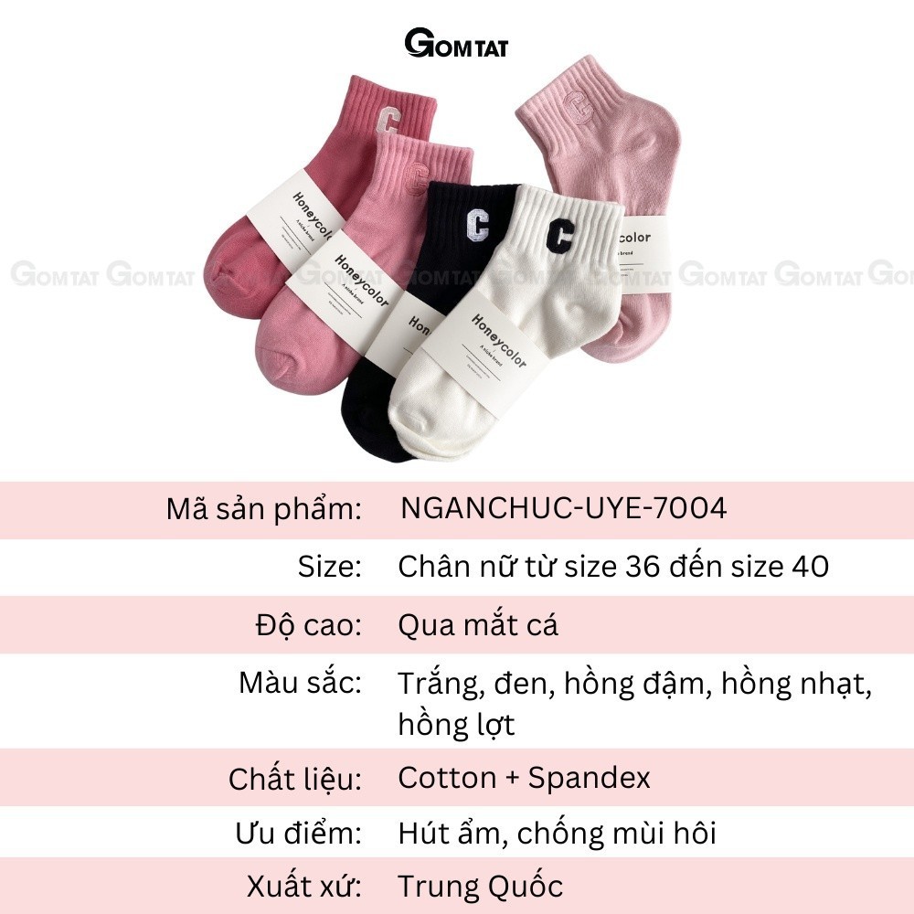 Combo 5 đôi tất nữ cổ ngắn GOMTAT chữ C, chất liệu cotton hút ẩm thoáng khí khử mùi -NGANCHUC-UYE-7004-CB5: loại Vớ nữ cổ ngắn với tone màu nhẹ nhàng rất dễ để phối với giày thể thao, hoặc giày tây công sở, chất liệu cotton khử mùi thoáng khí, êm ái khi sử dụng.