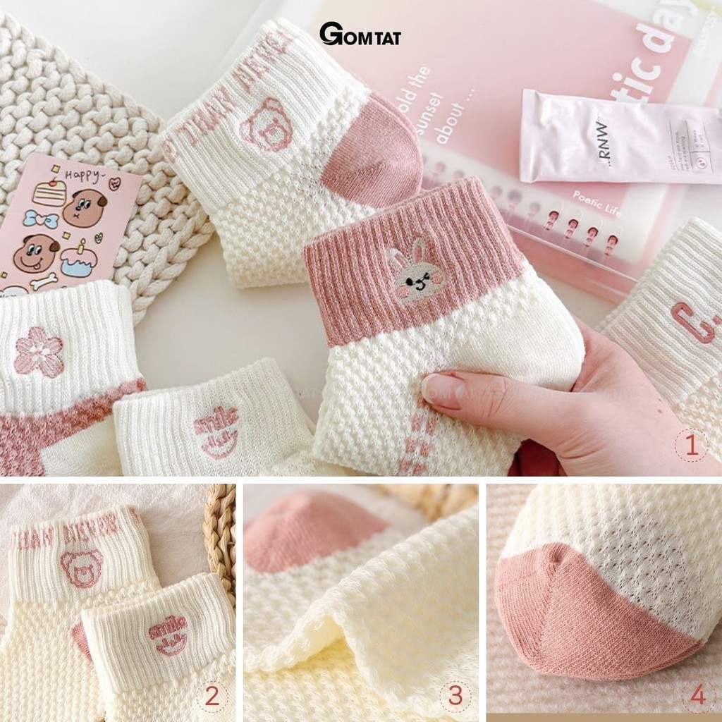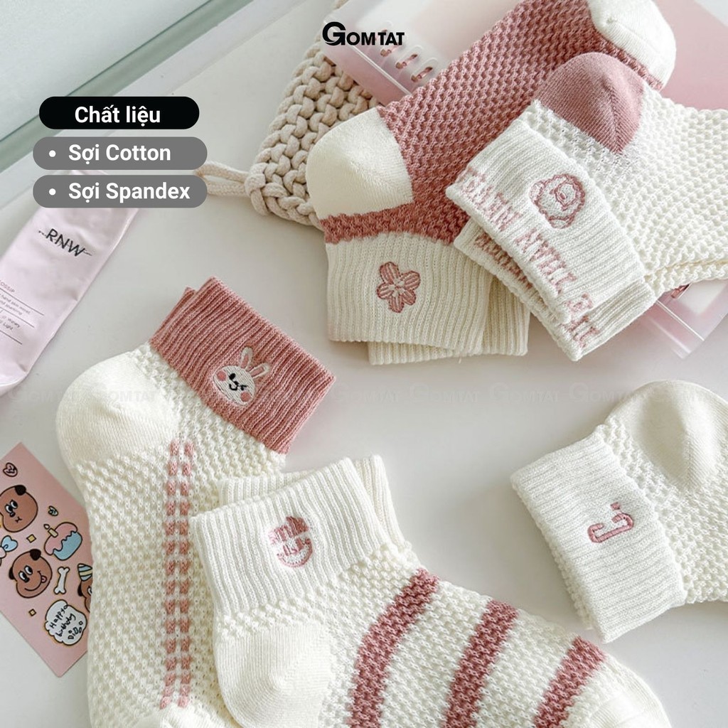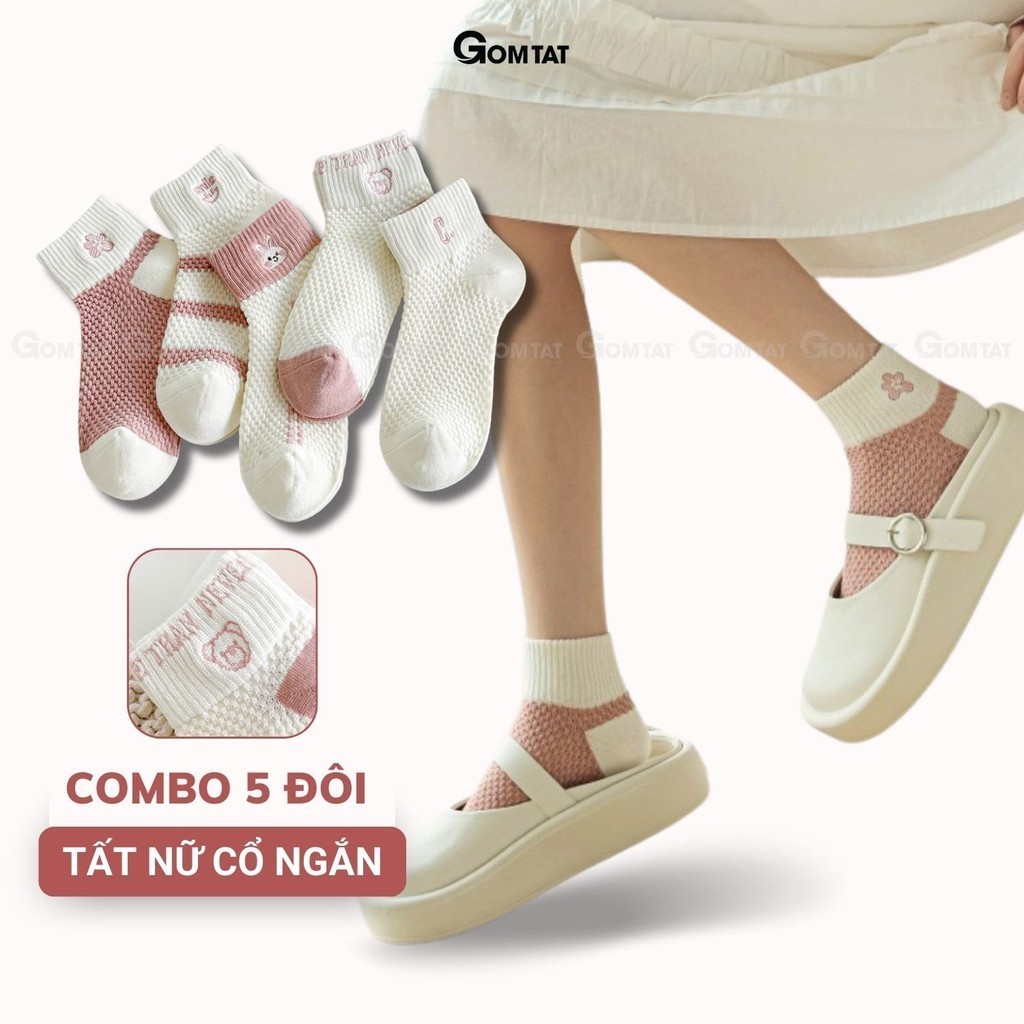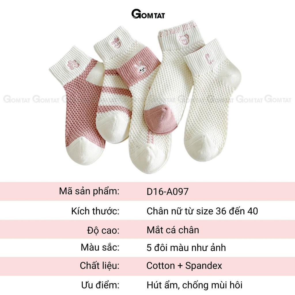 Combo 5 đôi tất vớ nữ cổ ngắn GOMTAT chất liệu cotton cao cấp, khử mùi êm chân, màu sắc siêu xinh - D16-A097: là loại Vớ cổ ngắn dành cho nữ với tone màu kẹo ngọt tươi mát, họa tiết siêu cưng, chất liệu cotton mềm mại hút ẩm thoáng khí khử mùi hiệu quả.