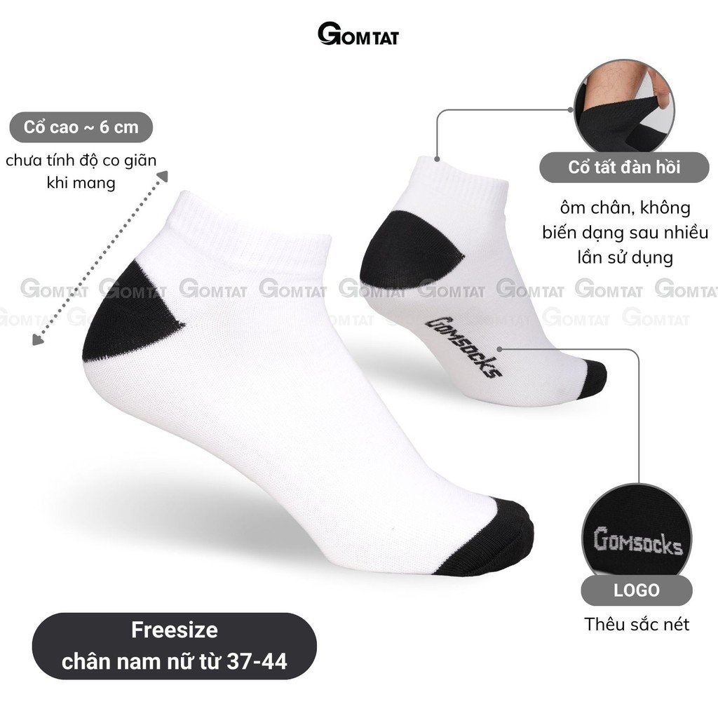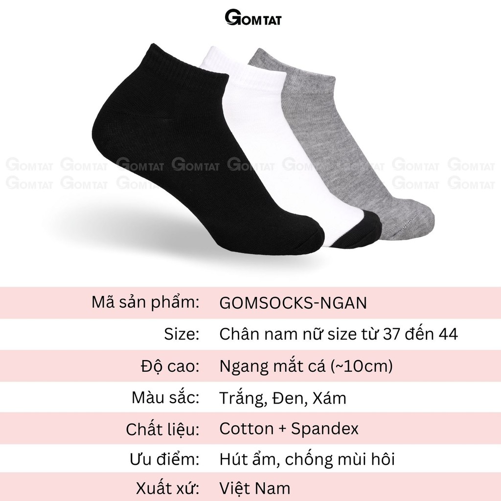 Combo 5 đôi vớ ngắn nam nữ GOMTAT, tất ngắn cổ trơn màu basic, hút ẩm thoáng khí, khử mùi êm chân - GOMSOCKS-NGAN-CB5 là dòng tất cổ THẤP trơn basic phù hợp mới mang hằng ngày, chơi thể thao hoặc đi làm, có thể phối cùng giày thể thao, công sở, hay giày sneaker