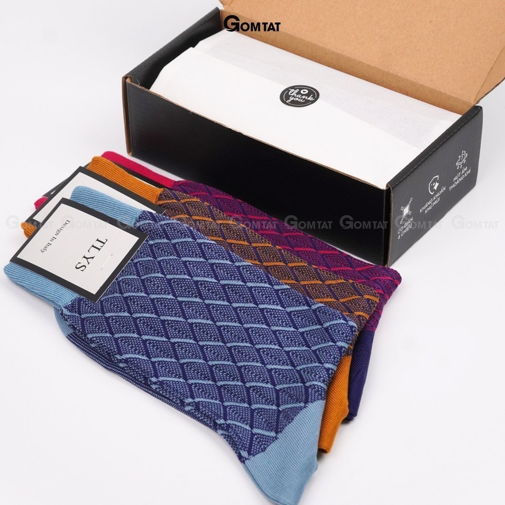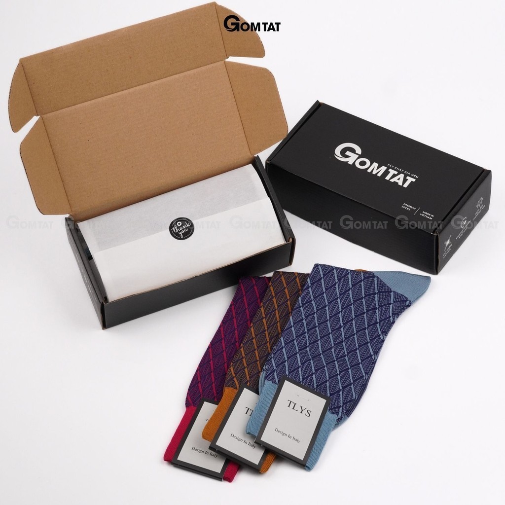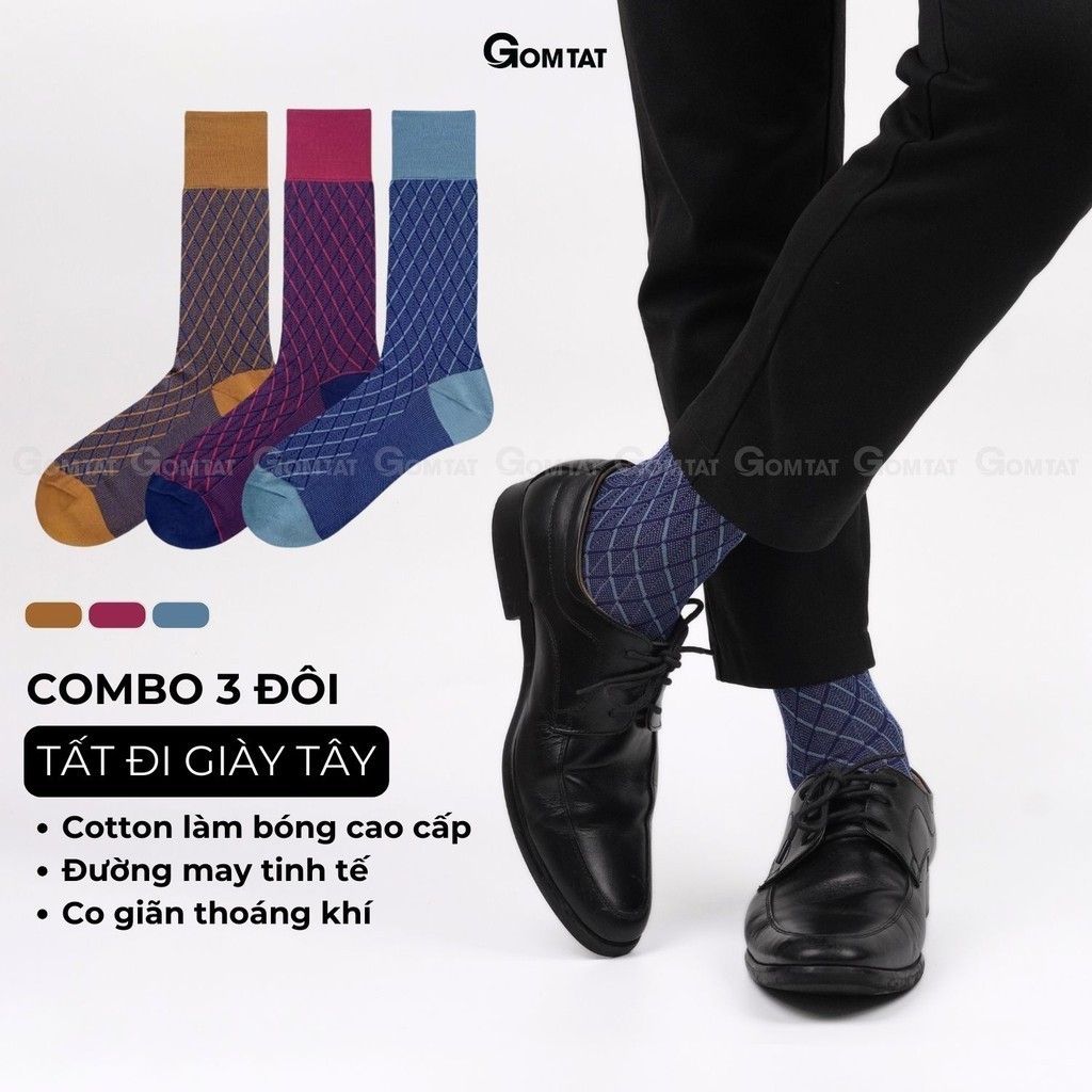Hộp 3 đôi tất đi giày tây cao cấp GOMTAT chất liệu cotton tự nhiên, hút ẩm thoáng khí, khử mùi êm chân - LYS-2203-CB3: là dòng tất cotton làm bóng cao cấp, với công nghệ dệt kim đôi mềm mịn, hút ẩm thoáng khí và khử mùi, chống mà sát cực tốt.