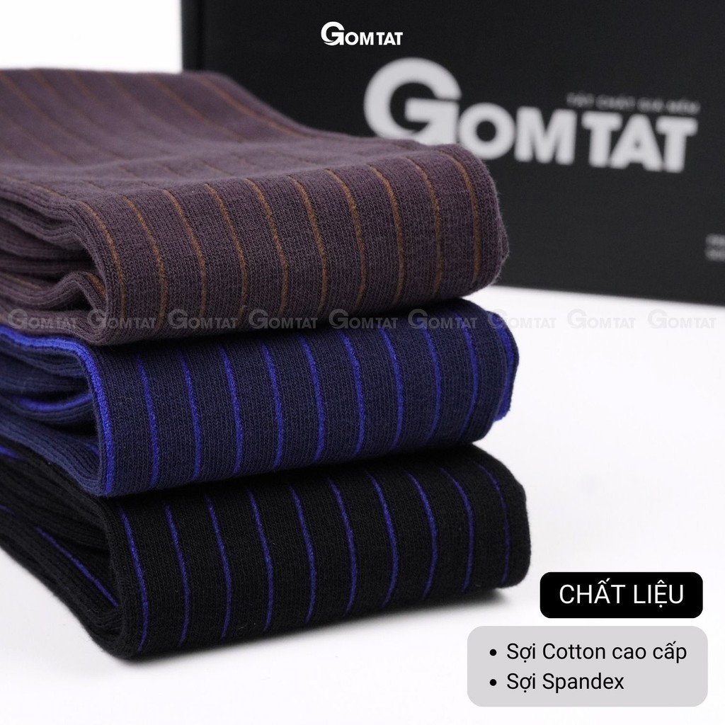 Hộp 3 đôi tất nam công sở GOMTAT cao cấp, chất liệu cotton mềm mịn, khử mùi thoáng khí êm chân - IHE-2201-CB3: là dòng tất cotton cao cấp, với công nghệ dệt kim đôi mềm mịn, hút ẩm thoáng khí và khử mùi, chống mà sát cực tốt.