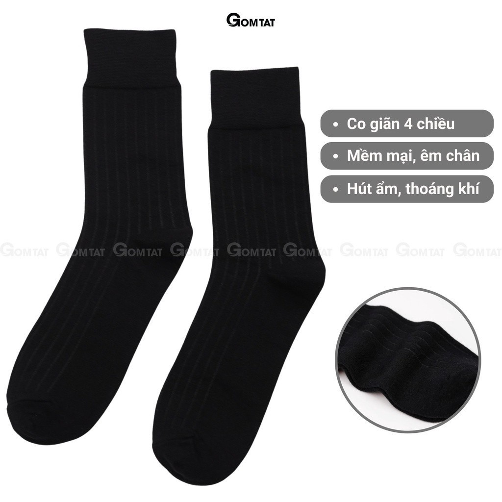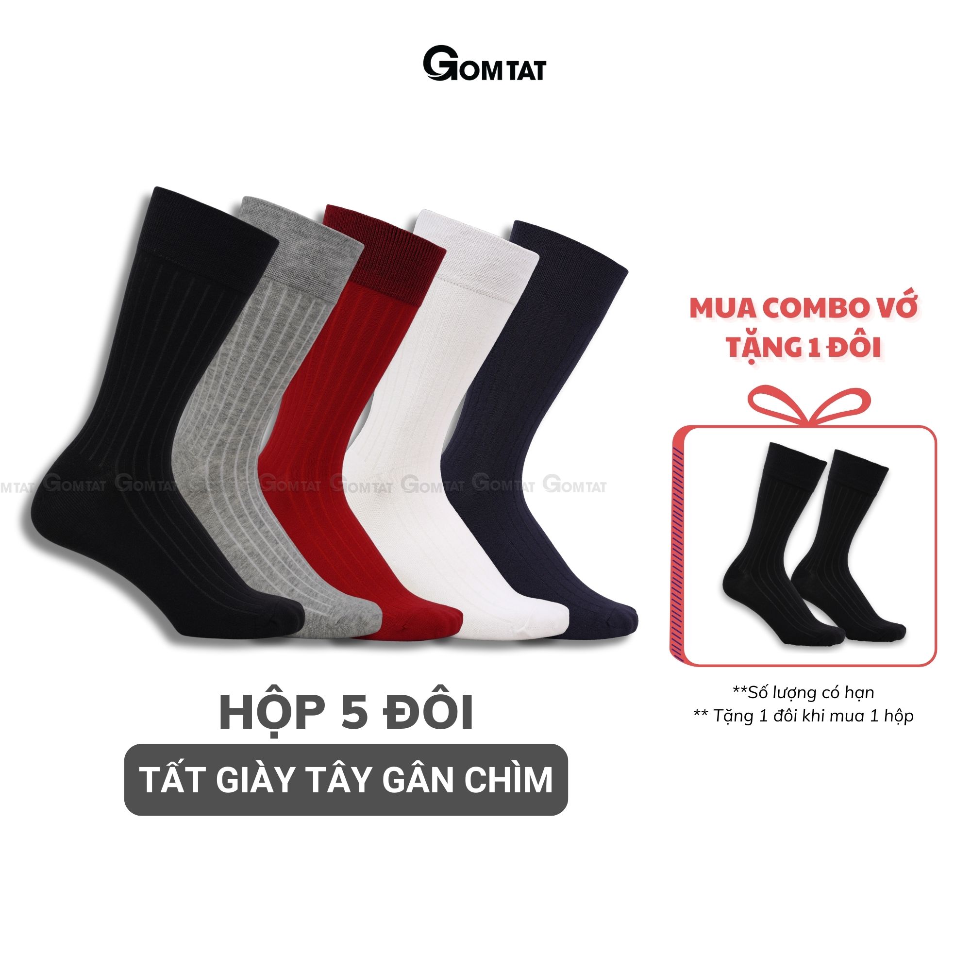Hộp 5 đôi tất nam công sở GOMTAT mẫu gân chìm, chất liệu cotton cao cấp, hút ẩm thoáng khí - GOM-GANCHIM-5DUMAU: Là loại vớ cổ Cao với tone màu cơ bản, rất dễ để phối với giày thể thao, hoặc giày tây công sở, chất liệu cotton khử mùi thoáng khí, êm ái khi sử dụng.