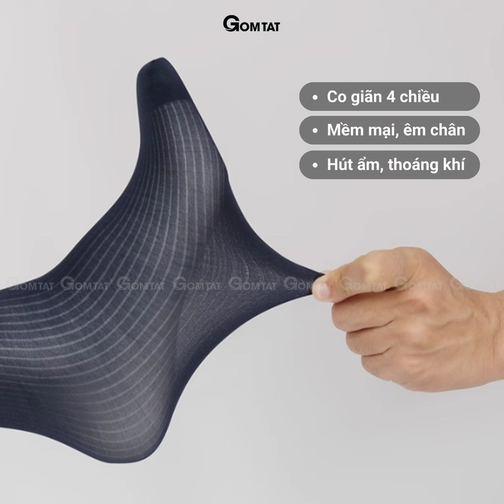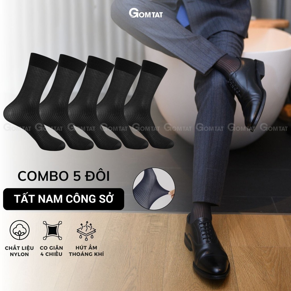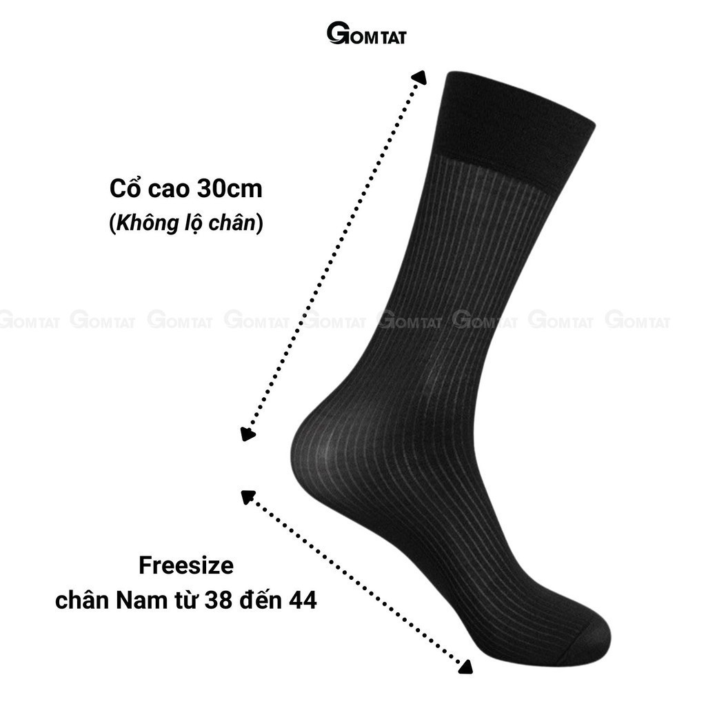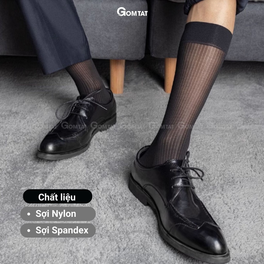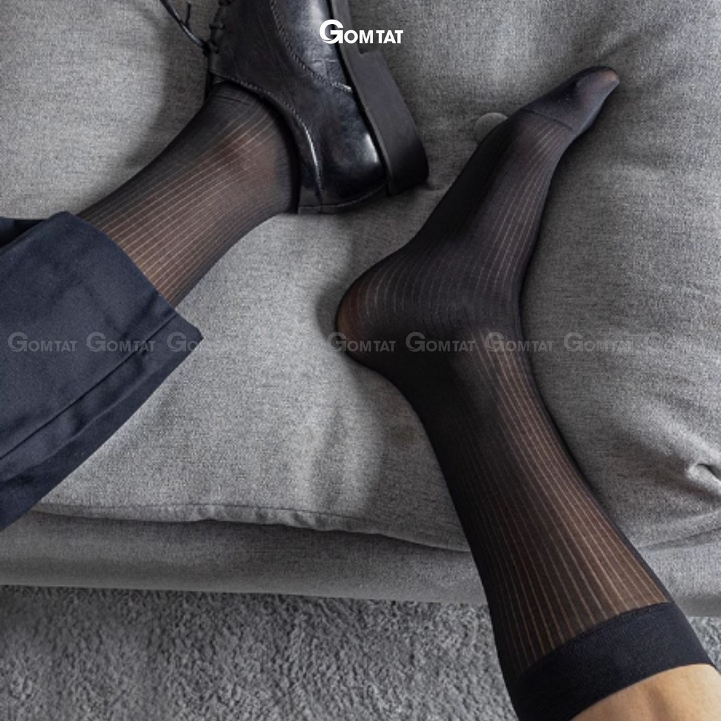 Hộp 5 đôi vớ công sở nam GOMTAT chất liệu sợi nylon cao cấp, họa tiết sọc gân xuyên thấu, mềm mịn êm chân - D16-A094-CB5: Là loại vớ đi giày tây cổ cao với chất liệu sợi nylon mềm mịn, xuyên thấu, phù hợp cho KH cá tính mạnh phối với giày thể thao, hoặc giày tây công sở, chất liệu nylon khử mùi thoáng khí, êm ái khi sử dụng, đem lại cảm giác sang trọng khi sử dụng